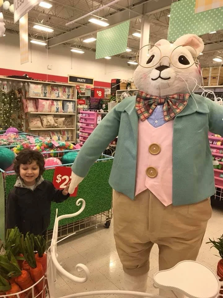 "Autism is beautiful little surprises that warm our hearts every single time. Here our handsome boy Harvey is being so patient through the busyness of a craft store, then asking if he can hold the Easter Bunny’s hand."
