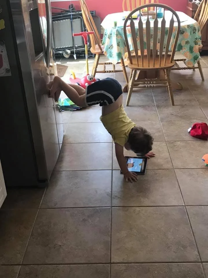 "This is Grayson. To Grayson, Autism looks like speech devices, sensory meltdowns, constantly setting/controlling the environment, strict routines and visual schedules, worrying about safety and the future, tracking devices for elopement, child-proofing on EVERYTHING, extra locks on ALL the doors, hand-to-hand transfers, and only eating Cheetos for four days straight. But it also looks like giggles for no reason, twirling in the living room gleefully, snuggles and kisses, unending love, seeing the world from a different view, trying hard every day to learn new things, the excitement that comes from a first sign or a first word (especially when they said he’d never talk), the smile that lights up his face when Mickey comes on, the satisfaction that comes from lining up his cars in just the perfect way, or the laughter he has while playing with his sisters."